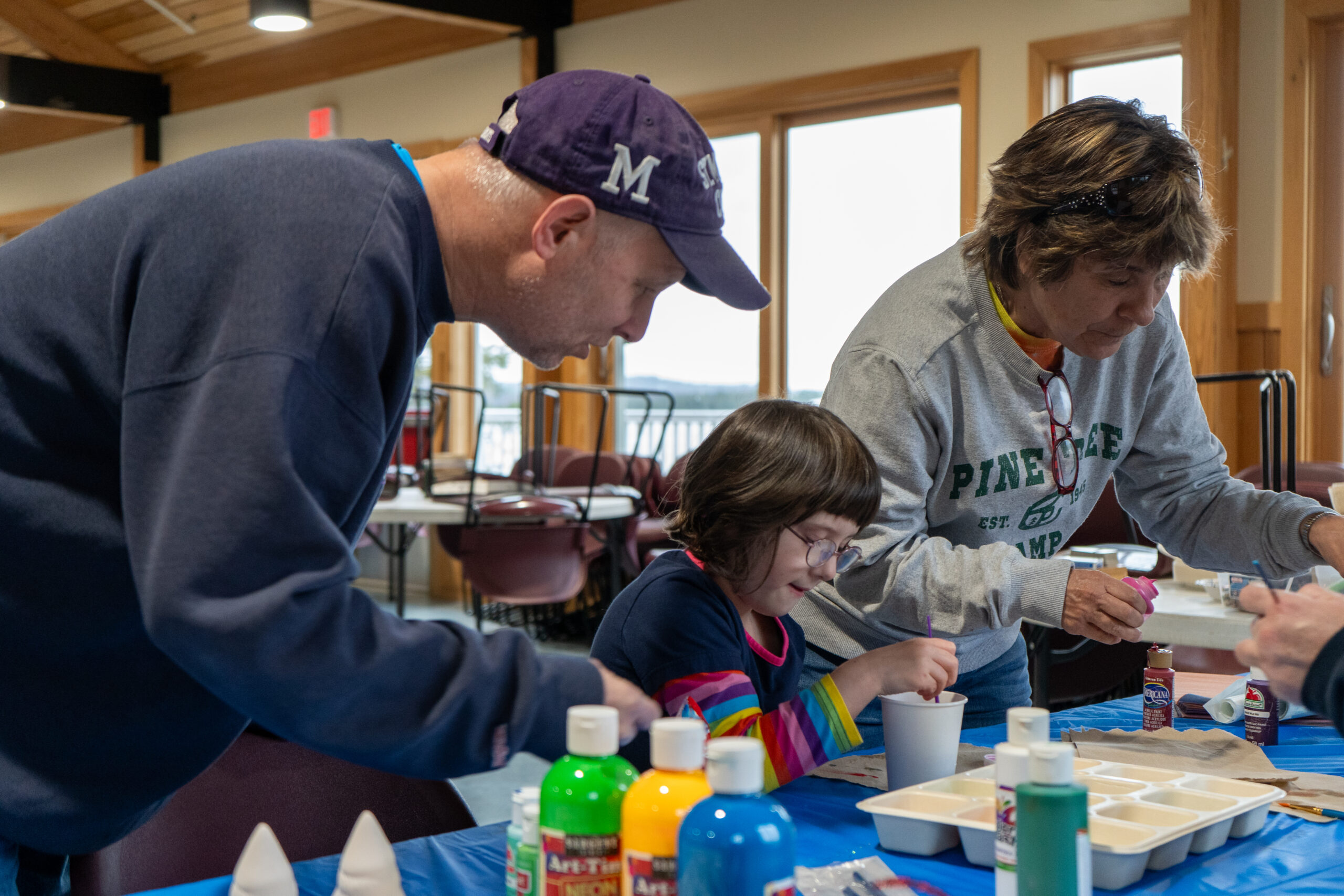 Family Camp provides the opportunity for families to come to Pine Tree Camp and stay overnight together in a fully accessible cabin. Kids and adults with disabilities and their families can enjoy time together trying adaptive biking, archery, snowshoeing the trails, eagle spotting, kayaking, arts and crafts or simply sitting back and enjoying cocoa and s’mores by the fire.
